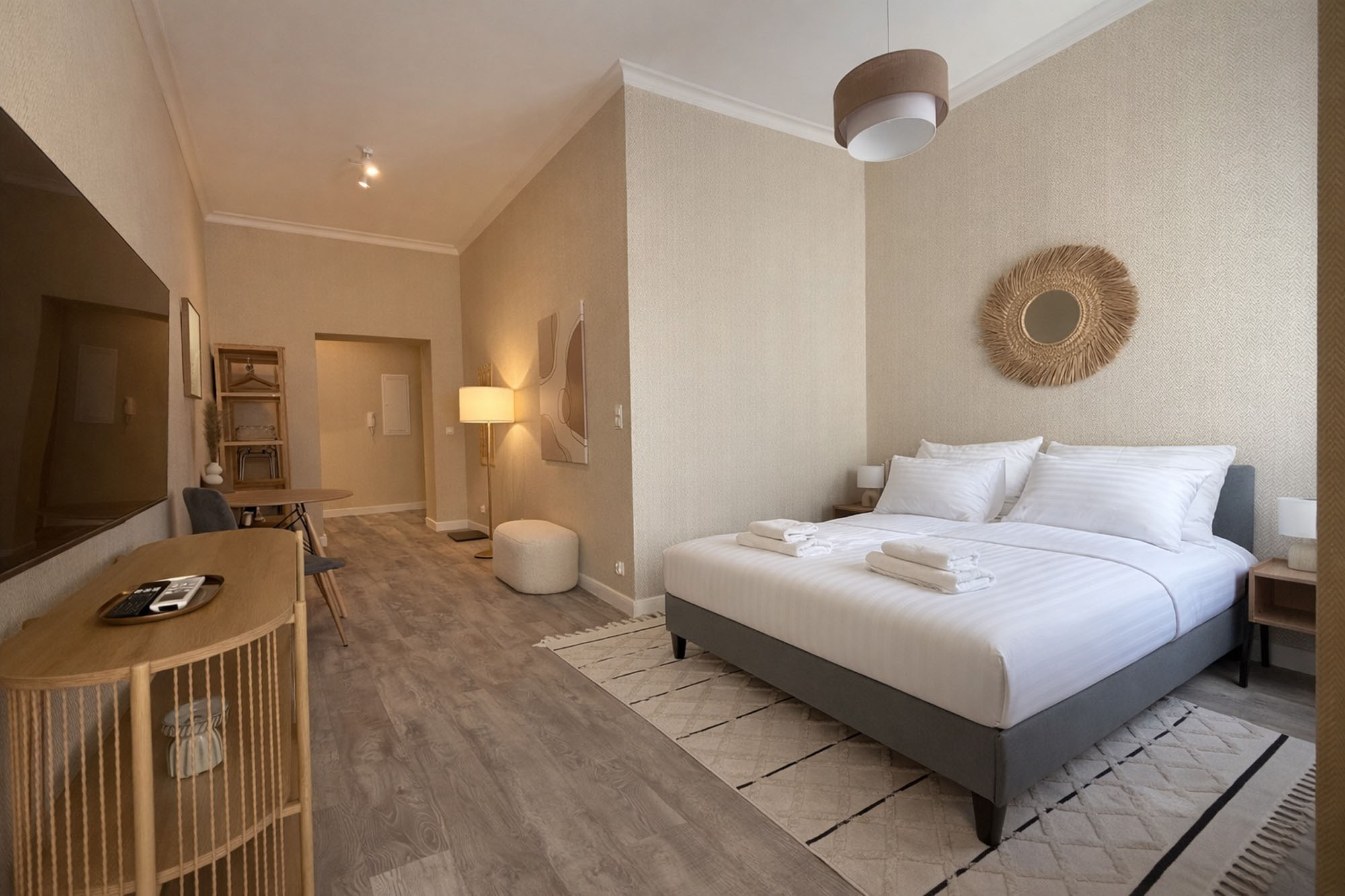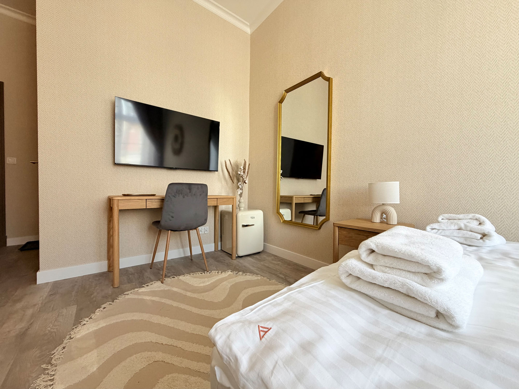 Do dyspozycji naszych gości oferujemy 4 apartamenty, które łączą historyczną architekturę z przemyślanymi i nowoczesnymi wnętrzami, tworząc przestrzeń idealną na każdy pobyt - od romantycznego weekendu, przez city break z przyjaciółmi, po delegacje służbowe.