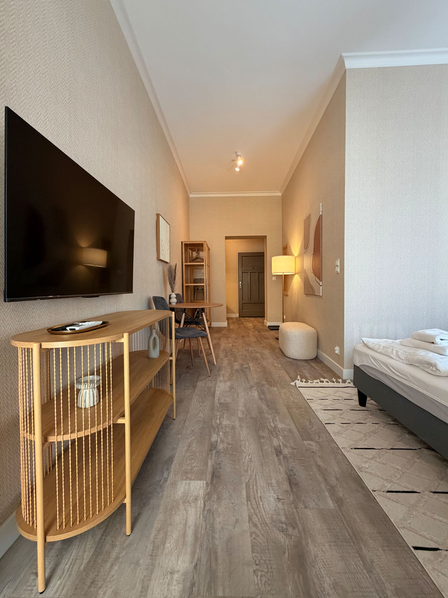 Do dyspozycji naszych gości oferujemy 4 apartamenty, które łączą historyczną architekturę z przemyślanymi i nowoczesnymi wnętrzami, tworząc przestrzeń idealną na każdy pobyt - od romantycznego weekendu, przez city break z przyjaciółmi, po delegacje służbowe.